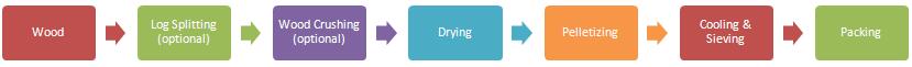 - General Equipment: Log Splitter, Crusher/Hammer Mill, Dryer, Large Wood Pellet Making Machine, Pellet Cooler, Conveyor, Pellet Packaging Machine, etc.